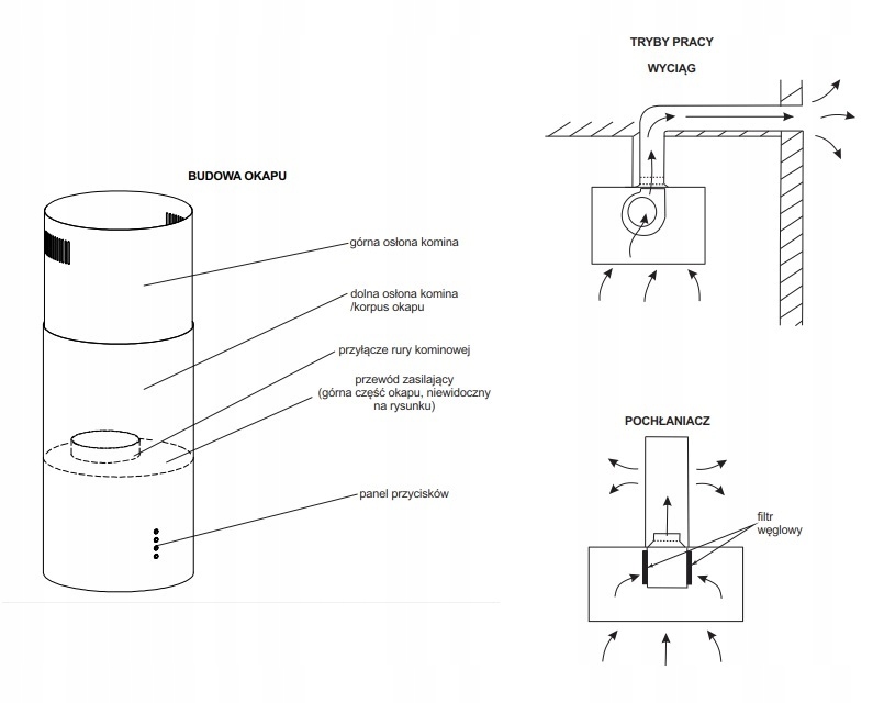 Якщо немає можливості підключити витяжку до димоходу, після встановлення опційно вугільні фільтри можна використовувати витяжку в режимі абсорбера. Після очищення повітря повертається на кухню.
