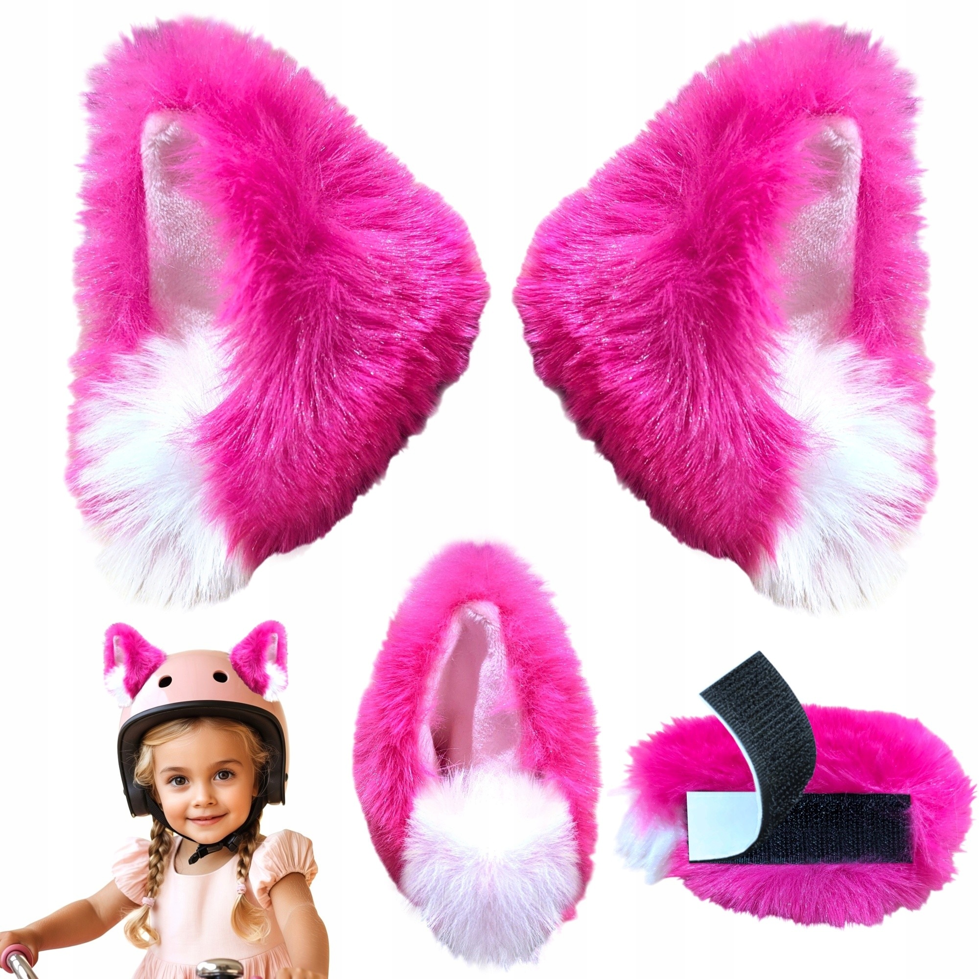 Вуха приклеєні до хутра шолома 2 рожеві