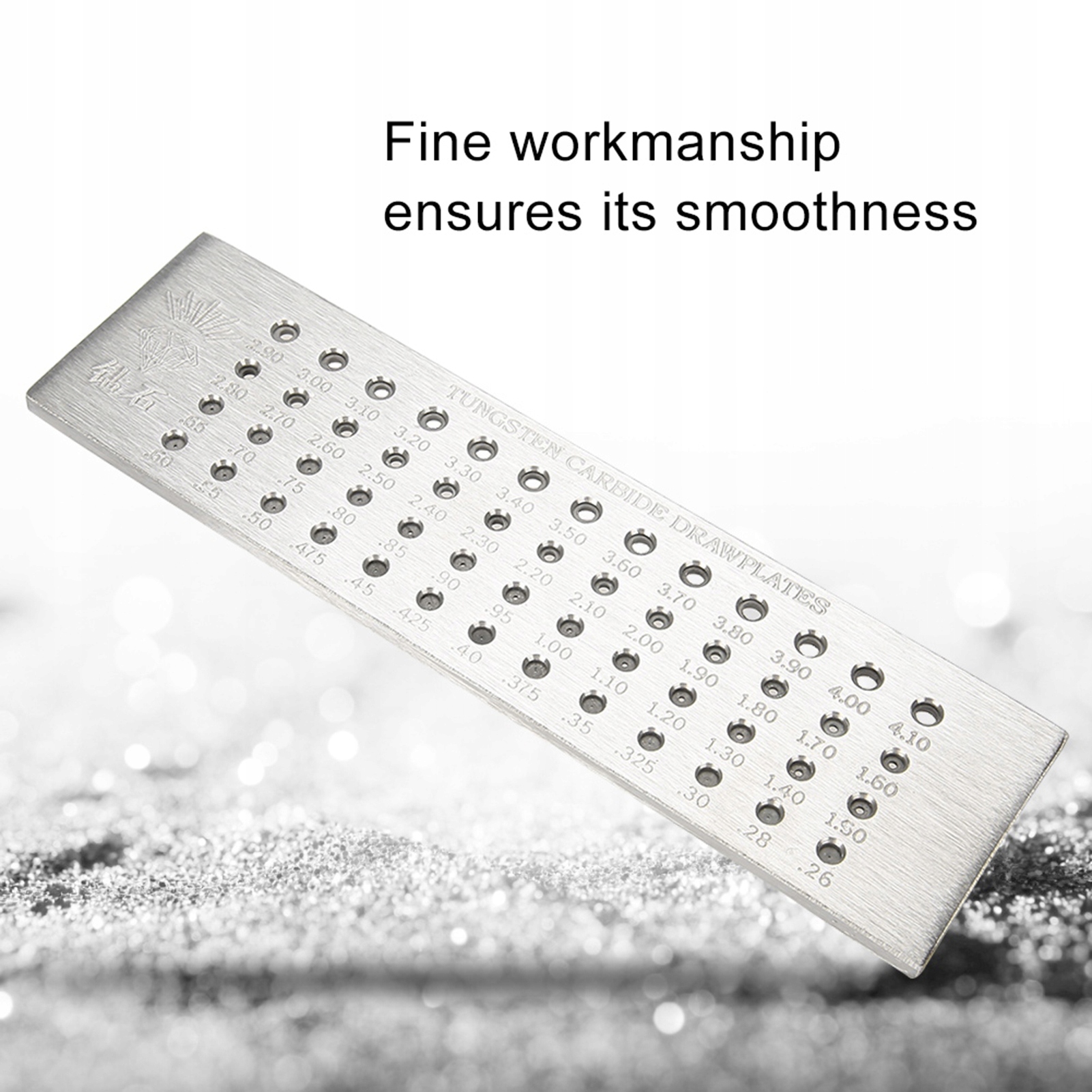Ця карбідна пластина вольфраму має 52 отвори, діаметр поступово змінюється з 0,26 мм до 4,10 мм.