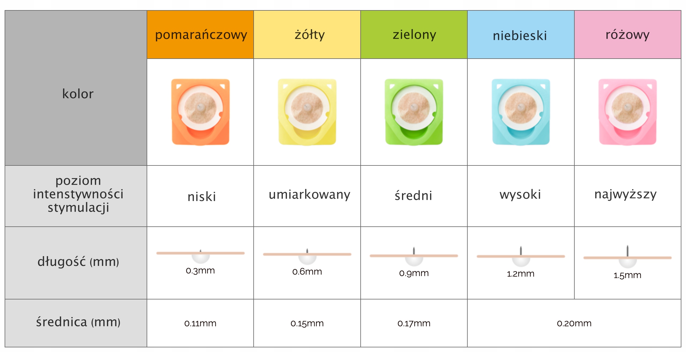 Інтарадермальні голки, що використовуються не лише для вушної голкорефлексотерапії, але й ідеально підходять для дотримання акупунктурних точок на тілі. Завдяки спеціальному фрагменту вони дозволяють здійснити тривалий термін після відвідування терапевта.