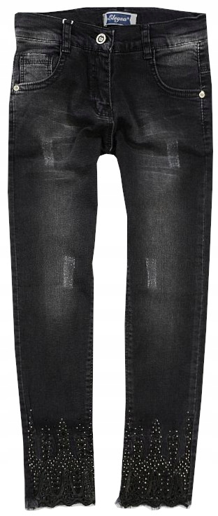 Колір чорний, злегка потертий, внизу штанини потертий, прикрашений стразами та вишивкою.