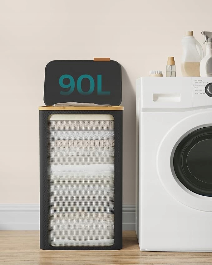 ВУЗЬКИЙ ВЕЛИКИЙ КОШИК ДЛЯ БІЛИЗНИ/ІГРАШОК З КРИШКОЮ, ЧОРНИЙ 90 Л ЗІ ЗНІМНИМ МІШКОМ