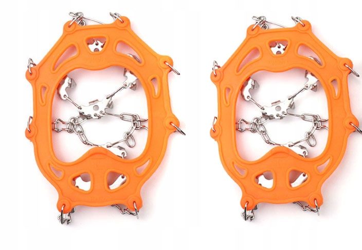 - Накладки мають 8 чорних або сріблястих шипів, залежно від комплектації (елемент, який впивається в сніг і лід).