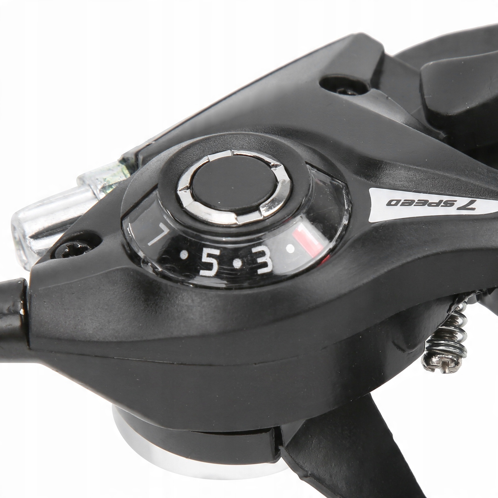 1. Виготовлений із міцного алюмінієвого сплаву та пластику, забезпечує найкращу продуктивність, максимальну безпеку та довговічність. 2. Регулятор швидкості гірського велосипеда керує вбудованим гальмом, яке має функції перемикання передач і гальмування та є простим у використанні. 3. Оптичний індикатор передач призначений для відображення положення передач. Усі механізми перемикання передач оснащено шумопоглинаючими кабелями та буферами для забезпечення точного та постійного перемикання передач. 4. Важіль тригерного типу, правий важіль перемикання 7
