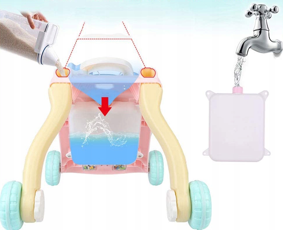 Якщо ви хочете, щоб ваша дитина гралася в одному місці, ви можете заблокувати задні колеса та налити воду в спеціальну ємність на задній частині виробу, щоб зробити його стійким.