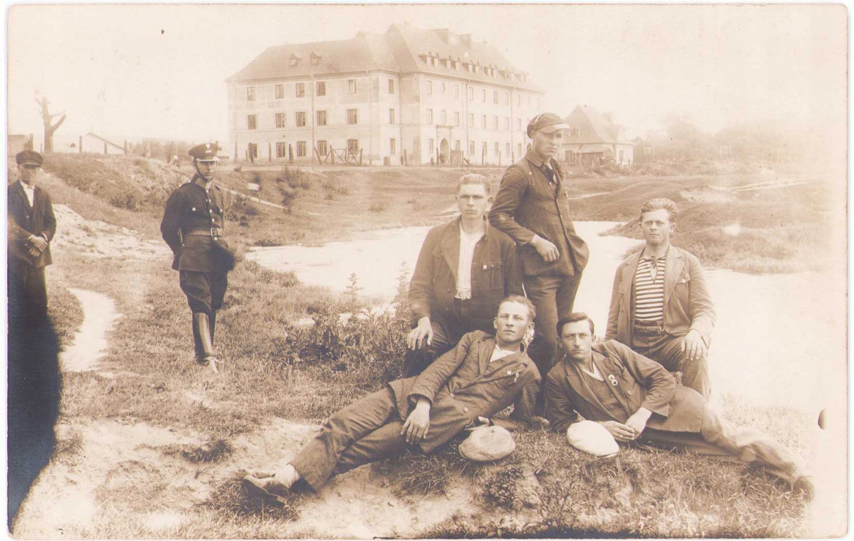 Warszawa 12. VII 1928~Grupa przyjaciół~Policjant~Nowy budynek szkoła? ~FOTO
