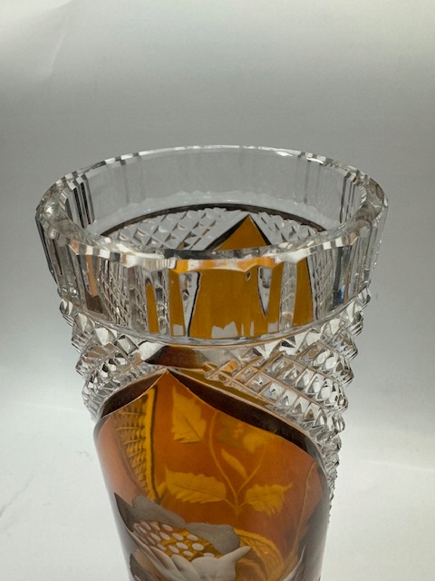 WAZON KRYSZTAŁOWY PRL MIODOWY PIĘKNY SZLIF