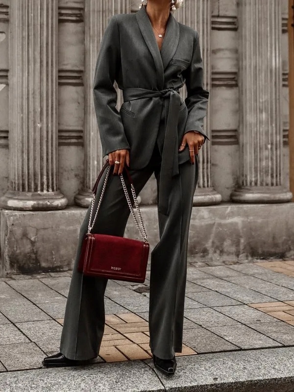 темно -сірий, елегантний жіноча куртка кокомора Аспанано . Модель з акцентною фігурою, встановленим розрізом, доповненою стильними подушками на плечах і зв'язування на талії. На передній імітації кишені, а на вершині широкий комір, що демонструє злегка декольте. Виготовлений з найвищої якості матеріалів і завершився підкладкою, це забезпечить комфорт та свободу руху. У комплекті з однойменними штанами, щоб створити елегантний вигляд із персонажем.