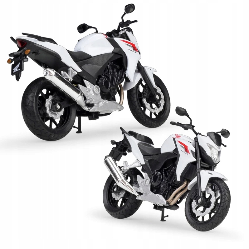 Мотоцикл металевого транспортного засобу Honda CB500F 1:10 , безумовно, порадує кожен автомобільний вентилятор. Висока якість матеріалів робить іграшку дуже естетично і є безпечною для дітей. Ретельне відтворення, металеве тіло, намальоване справжнім автомобілем, порадує кожного маленького і великого хлопчика. Гумові шини та рухомі елементи є додатковою перевагою.