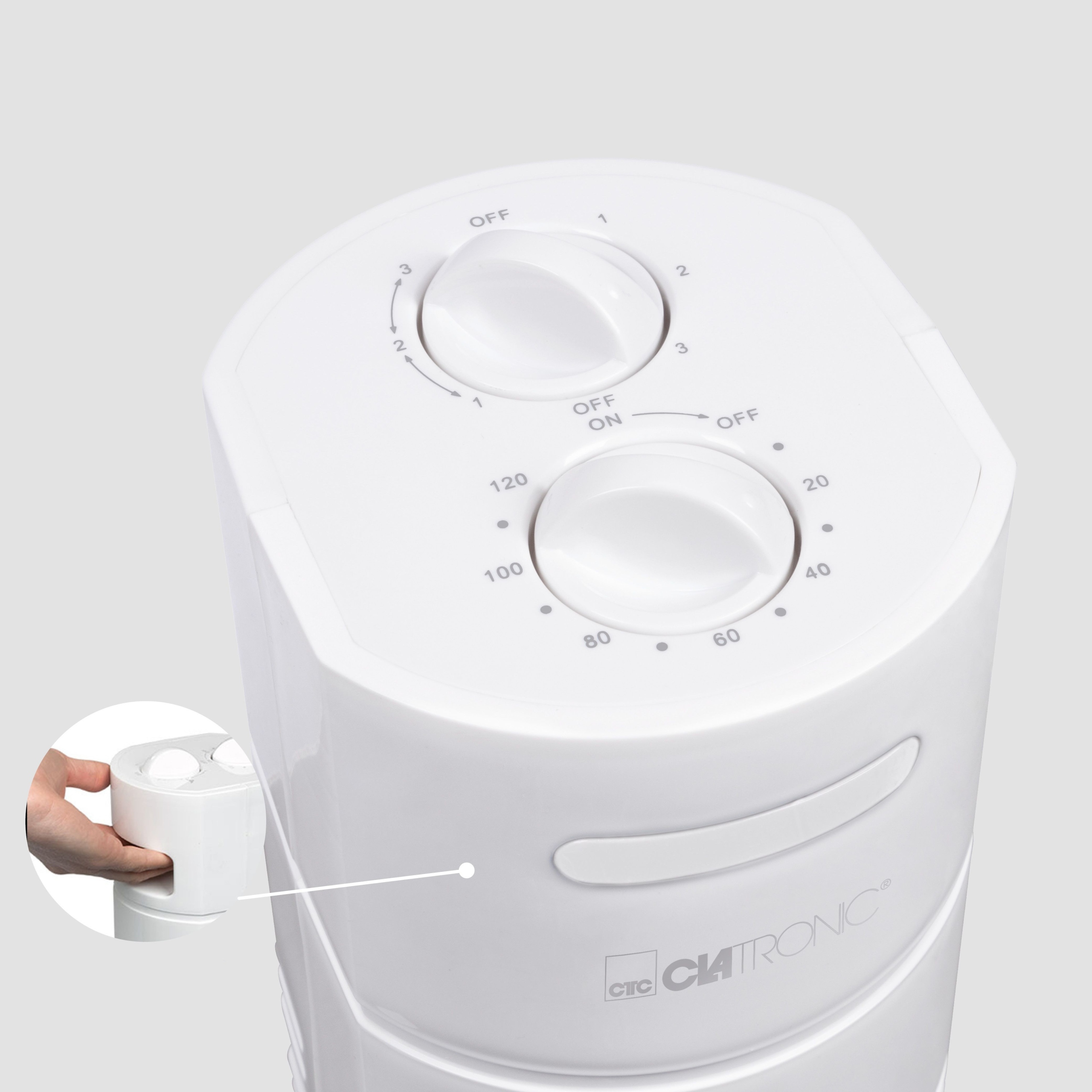 Clatronic TVL ефективний, тихий і стриманий колонний вентилятор. Три рівня потужності, на яких працює вентилятор, дозволяють регулювати швидкість охолодження повітря. Пристрій має функцію коливання, завдяки чому повітря в кімнаті буде охолоджуватися більш рівномірно. Ви також можете направити прохолодний потік у будь-якому напрямку в точці, вимкнувши коливання.
