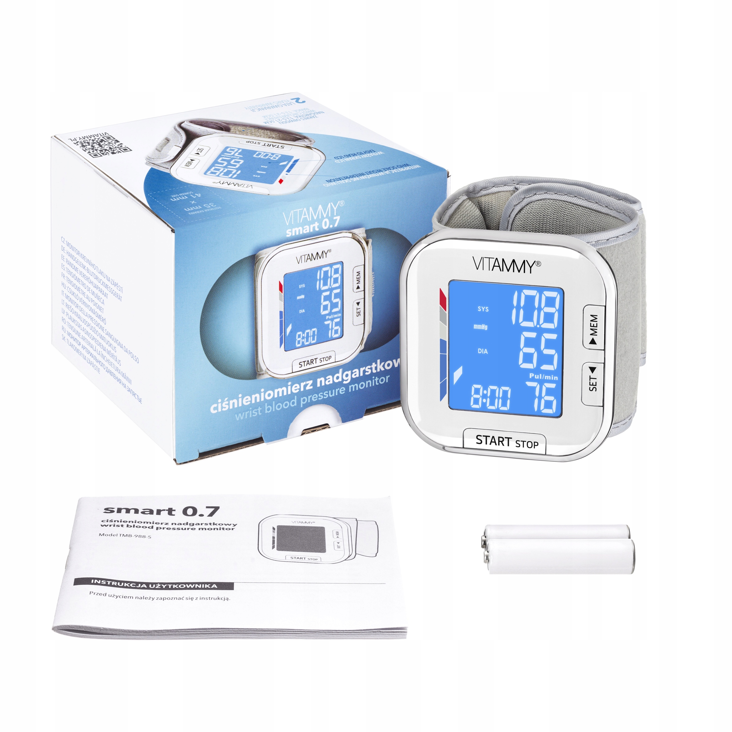 Тонометр VITAMMY SMART 0.7 – це прилад для вимірювання артеріального тиску, який дозволяє швидко й м’яко вимірювати кров, не виходячи з дому. . Тонометр також має функцію вимірювання пульсу та збереження результатів. Це зручний наручний тонометр, який не займає багато місця і завжди повинен бути під рукою. Легкий і швидкий монтаж - ще одна зручність для всіх тих, хто живе в поспіху і не має часу піклуватися про своє здоров'я. Будьте розумними і дозвольте нам подбати про вас!