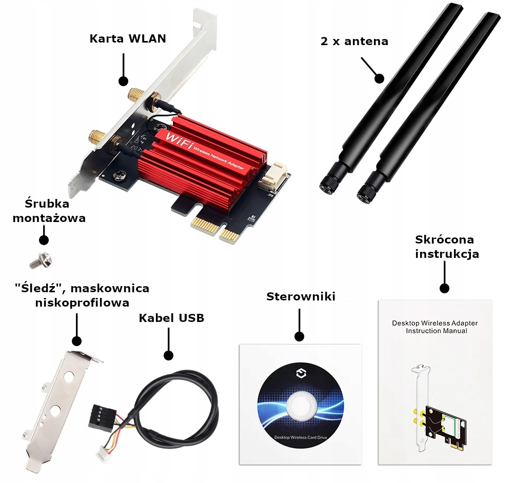 Мережева карта Fenvi FV-AC1200 оснащена роз'ємом PCIE, який забезпечує просту та швидку установку в більшості настільних комп'ютерів. Набір включає всі необхідні аксесуари для складання.