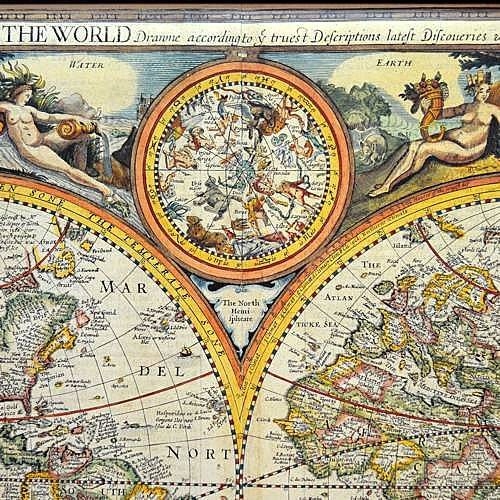 Стародавня карта світу показує світ, яким його уявляли в 1651 році. Ідеально підходить в якості декору офісів, офісів і віталень. Ідеальний подарунок для кожного, стильний і унікальний.