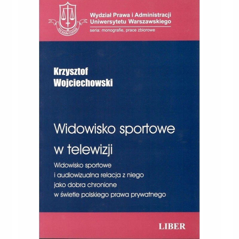 Асоціація спортивних та аудіовізуальних ЗМІ є одним із явищ сучасної культури, і в той же час важливим соціальним та економічним явищем. Книга присвячена захисту приватного законодавства спортивного видовища як предмет аудіовізуальних відносин та юридичного статусу тих же відносин, а також обмежень щодо захисту цих товарів. Ці питання ще не були предметом широких досліджень у польській літературі. Книга містить догматичний та порівняльний аналіз широкого спектру юридичних проблем, пов’язаних із мовленням спортивних виступів на телебаченні, особливо в галузі авторських прав, цивільного права, а також законів про ЗМІ та закони про конкуренцію. Він намагається відповісти на питання про юридичну основу для захисту спортивних виступів, вказує на диспетчер ексклюзивної експлуатації шоу, характеризує угоду про передачу телебачення, вказати статус такого відносини у світлі авторських прав, теперішніх обмежень щодо захисту шоу та відносин, що диктуються свободою інформації та захистом конкуренції. У книзі також представлені практичні аспекти телевізійних спортивних трансляцій на внутрішніх та європейських підставах. У широкій мірі він враховує європейське право та прецедентне право та вибрані країни, пов'язані зі спортивними відносинами в аудіовізуальних ЗМІ.