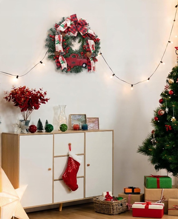 Wieniec świąteczny 50 cm zdobiony motywy czerwone bożonarodzeniowy stroik