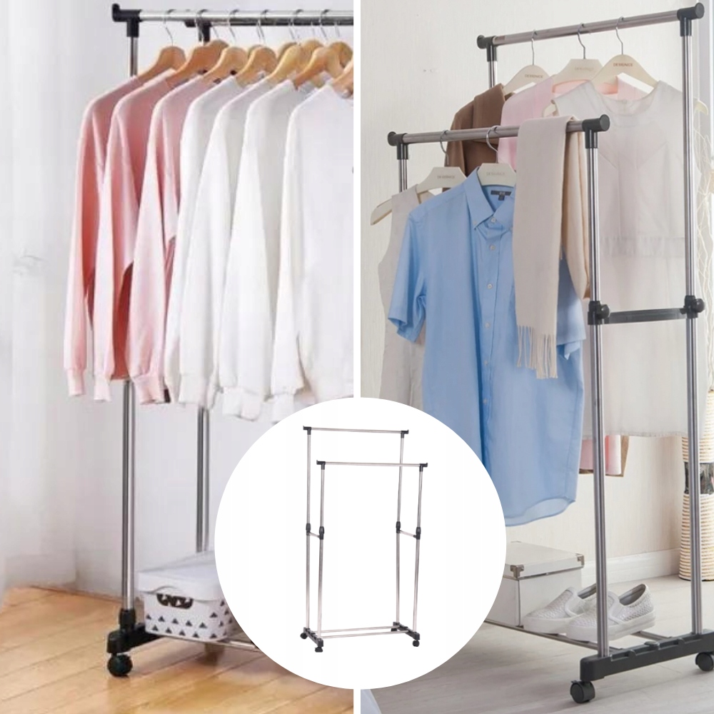 ПОДВІЙНА ВІШАЛКА, ПІДСТАВКА ДЛЯ ОДЯГУ НА КОЛЕСАХ