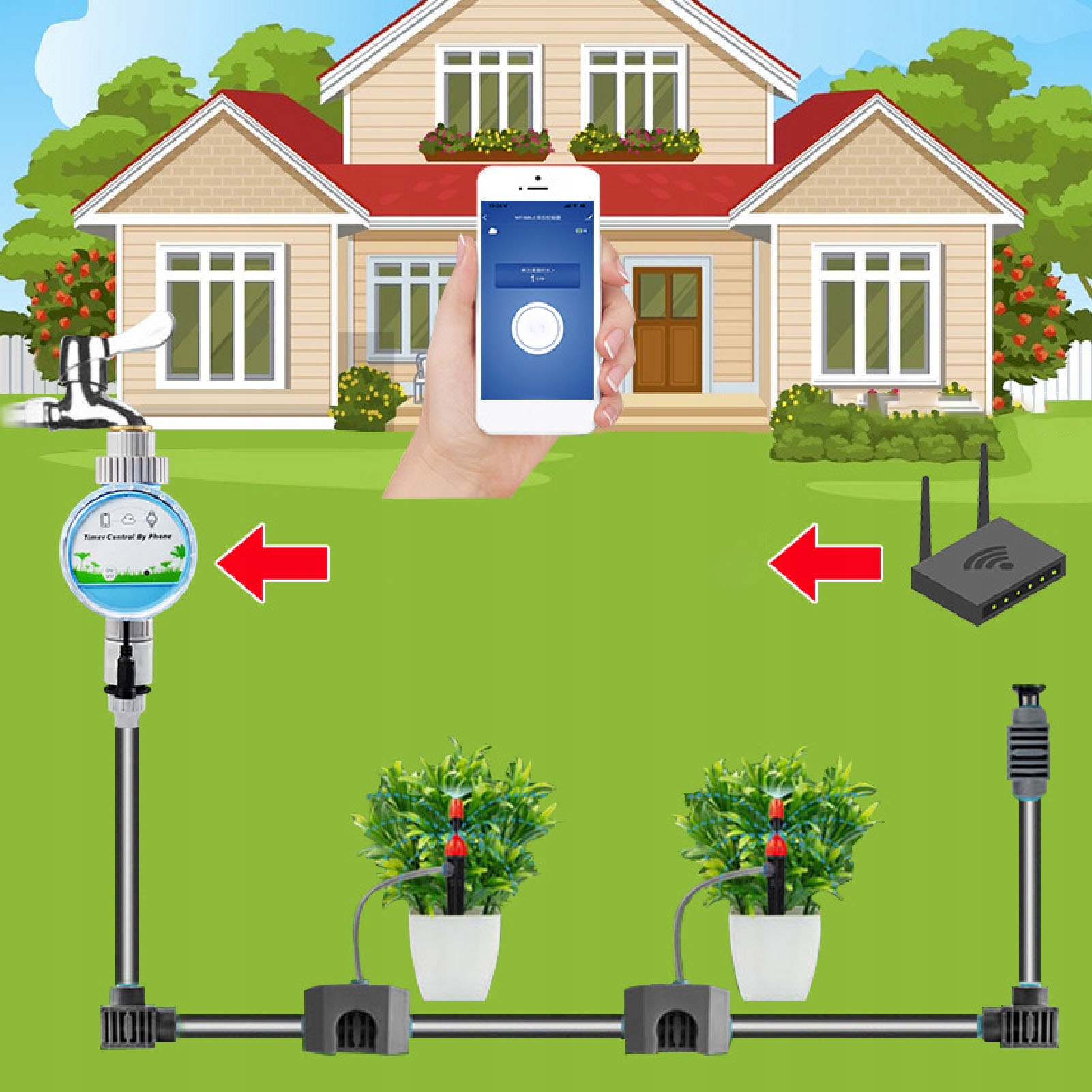 ❇️❇️Функція❇️❇️🌷Пульт дистанційного керування Wi-Fi і Bluetooth: полив і обприскування саду можна контролювати в будь-який час і в будь-якому місці за допомогою NaIntelligent Wi-Fi і таймера зрошення, керованого Bluetooth.