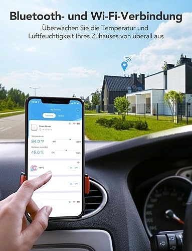 Завдяки стабільному з’єднанню Wi-Fi/Bluetooth за допомогою програми Govee Home ви можете відстежувати температуру та вологість повітря в режимі реального часу та відповідно реагувати на зміни (підтримує лише Wi-Fi 2,4 ГГц).