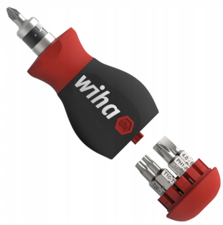 - Для щільного умови роботи майстрам потрібні короткі та зручні викрутки, які все ж дозволяють значну передачу сили. Коротка викрутка Stubby з подвійними насадками є ідеальним рішенням для такого типу використання. Завдяки загальній довжині 85 мм він ідеально підходить для роботи у вузьких місцях. Викрутка оснащена магазином для біт, розташований в рукоятці, який містить подвійні біт із загальними профілями гвинта. Ви можете швидко та легко вибрати відповідну насадку та зняти її з ручки. Завдяки цьому майстри, які працюють у дорозі, можуть виконувати всі звичайні гвинтові з’єднання.