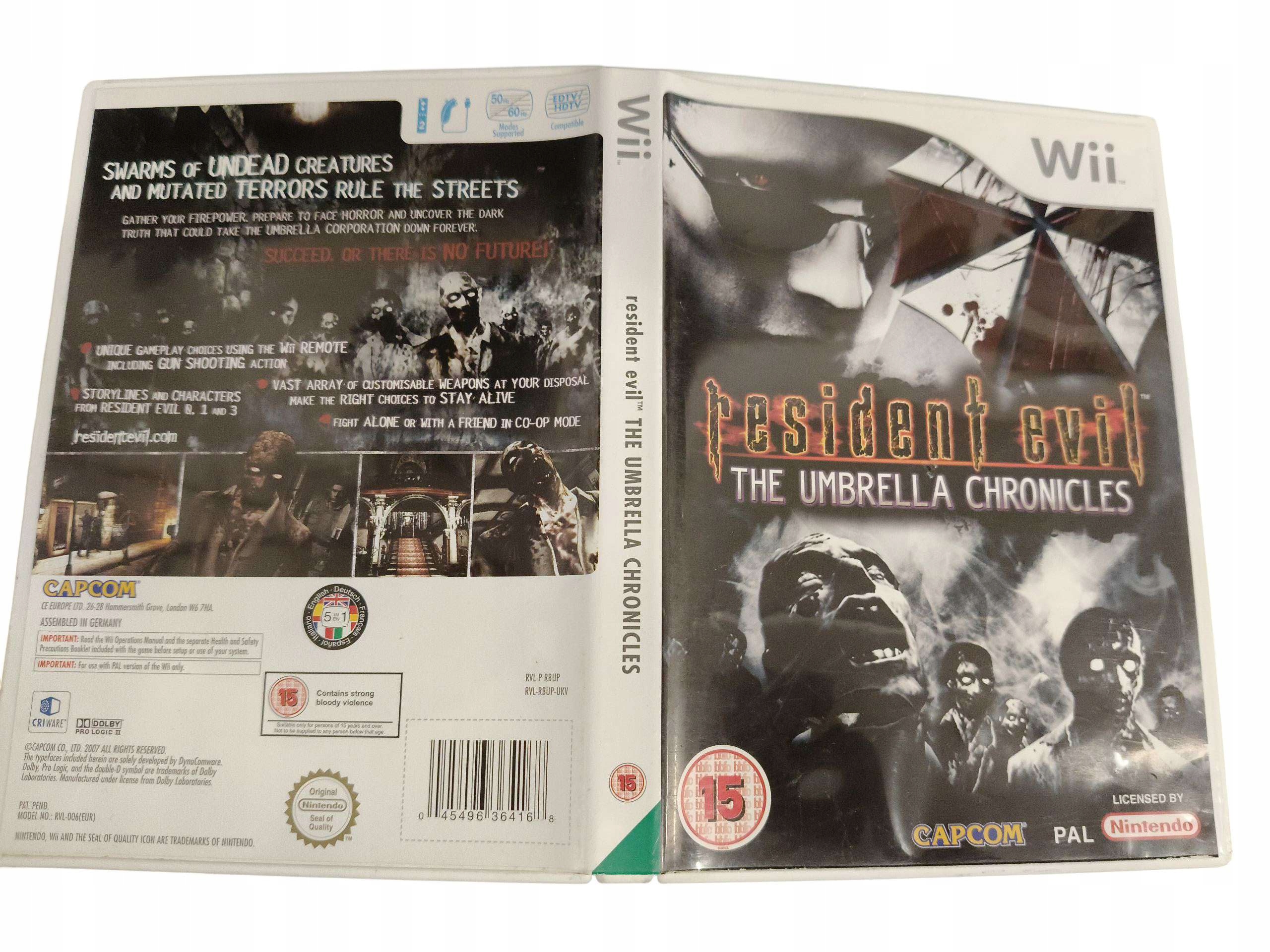 Resident Evil: Umbrella Chronicles - ще одна частина відомої серії, присвяченої лише платформі Nintendo Wii. На відміну від випущеного раніше Resident Evil 4, яка була грою з камерою, розташованою за спиною героя, тут ми спостерігаємо дію з очей персонажа, яким ми керуємо. Конвенція гри також змінюється. Немає такого тиску на вирішення головоломок або різання клавіш у потрібних місцях. Umbrella Chronicles - це типова стрілянина по рейках (так -зведені "приціли"), в якій ми можемо використовувати новий гаджет, вироблений Nintendo - Wii Zapper - нагадує гвинтівку. Ми вкладаємо в нього wii-mote та nunchuk і стріляємо в опонентів, що атакують з усіх боків.