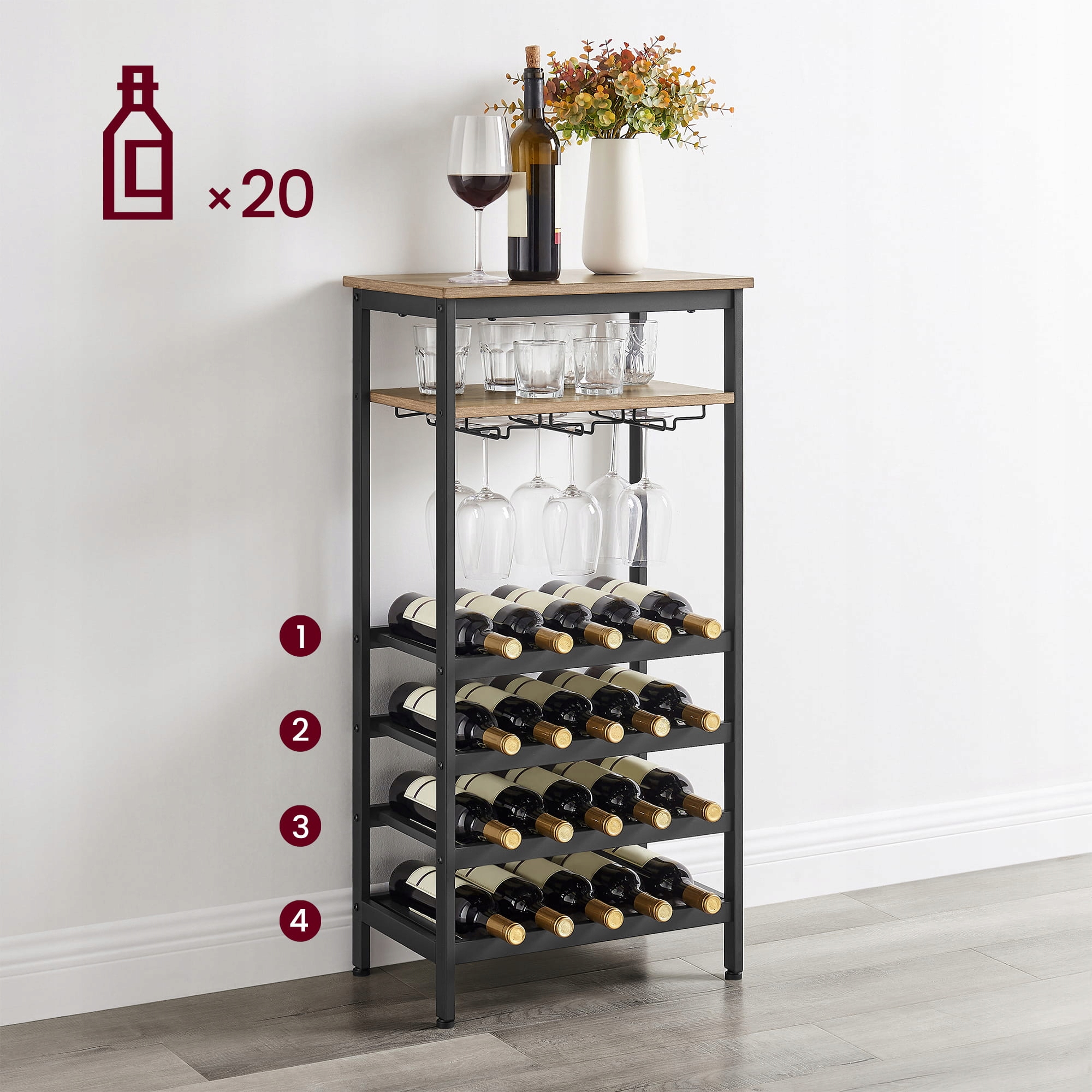 Полиця вміщує 20 пляшок.