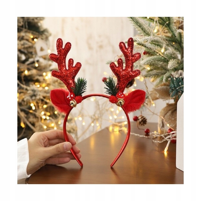ŚWIĄTECZNA OPASKA DO WŁOSÓW Z USZKAMI I ROGAMI RENIFER