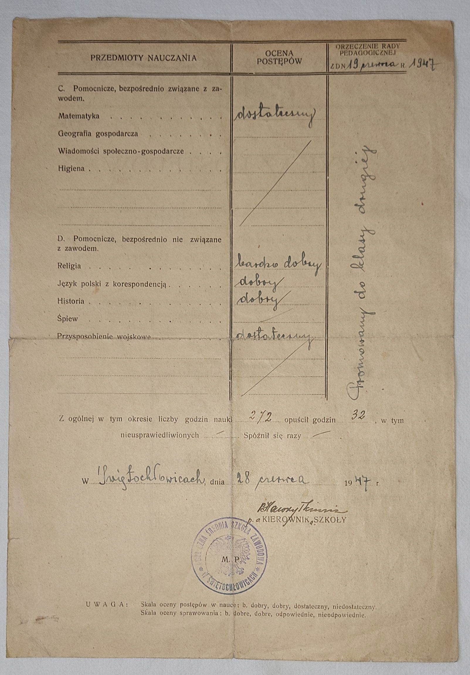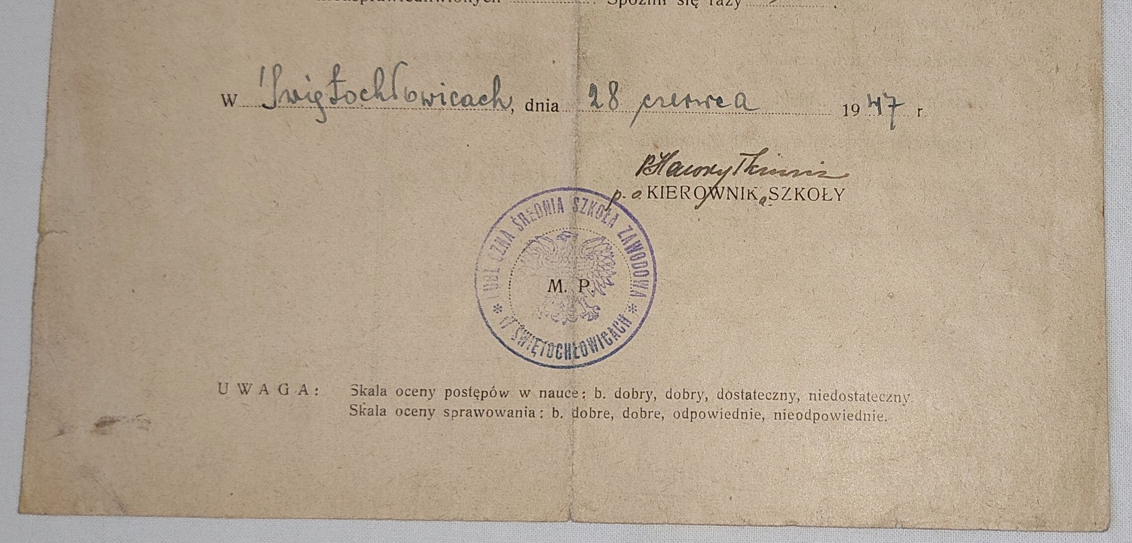 ŚWIĘTOCHŁOWICE ŚLĄSK СЕРТИФІКАТ СЕРЕДНЬОГО ПРОФЕСІЙНОГО ПЕРУКАРСЬКОГО ШКОЛА 1947 р.