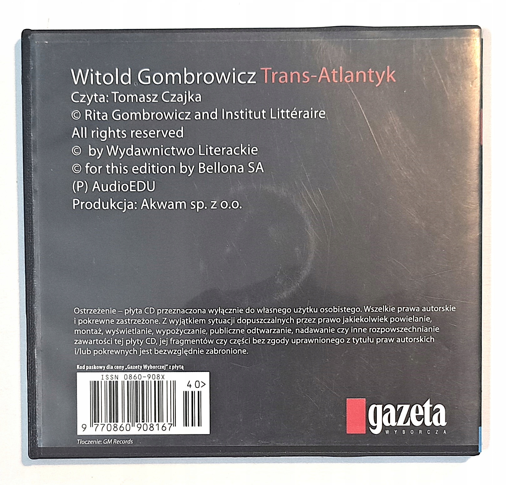 Просматривая «Witold Gombrowicz Trans-Atlantic» данный товар из каталога «Образование и школьное чтение», вы можете получить дополнительную скидку 4%, если произведете 100% предоплату. Размер скидки вы можете увидеть сразу при оформлении заказа на сайте. Внимание!!! Скидка распространяется только при заказе через сайт.