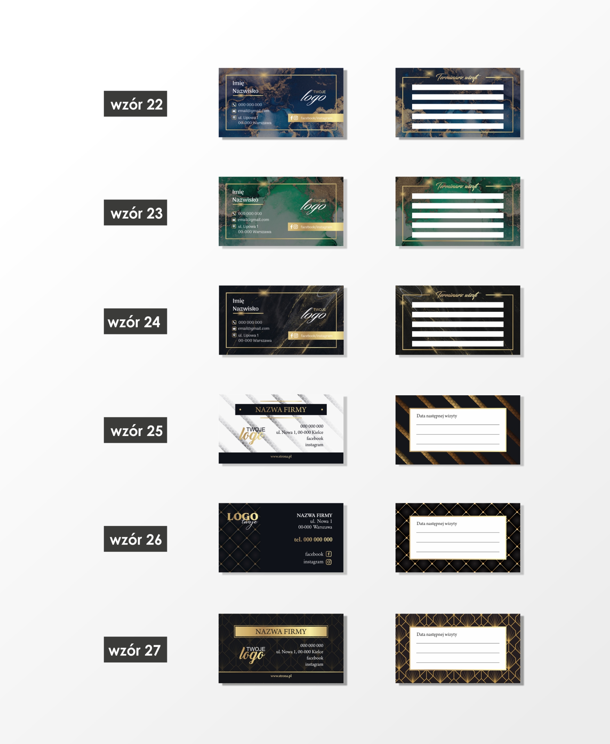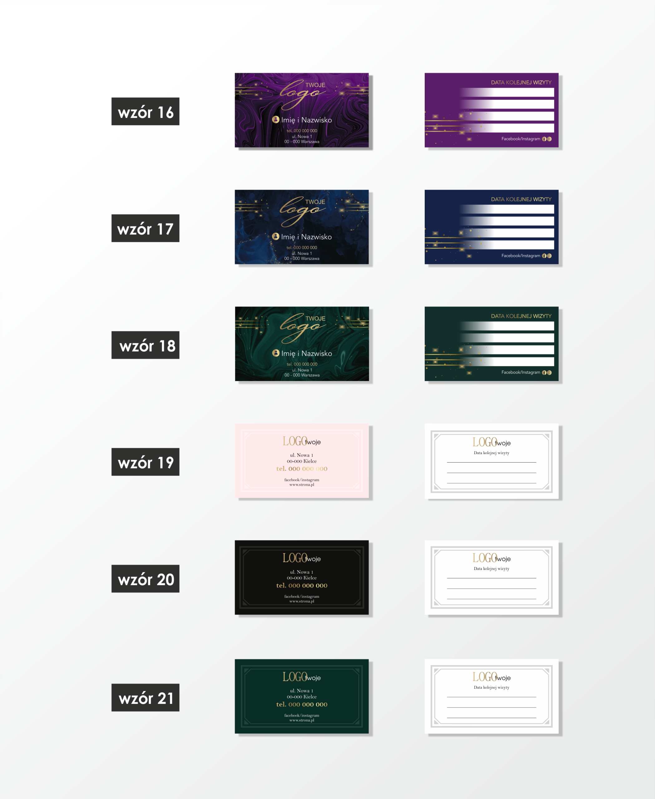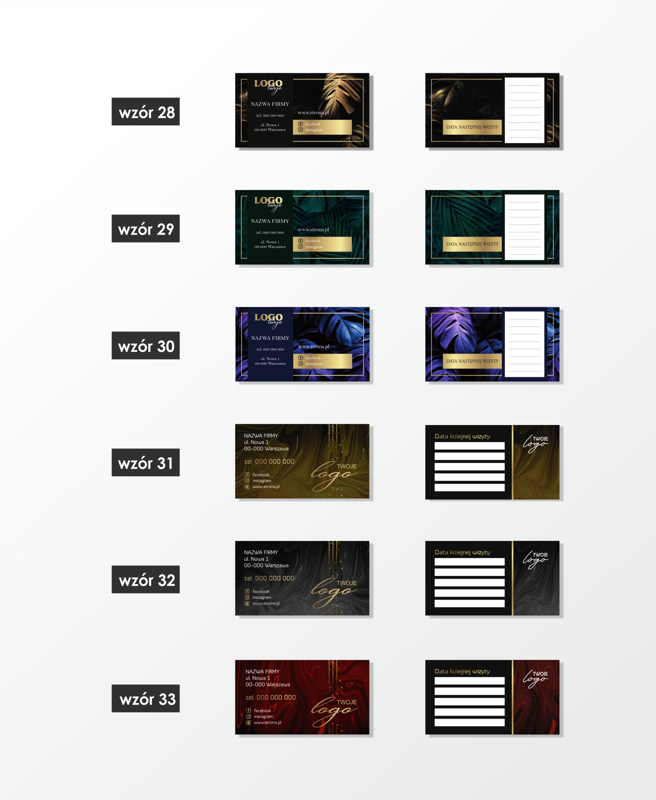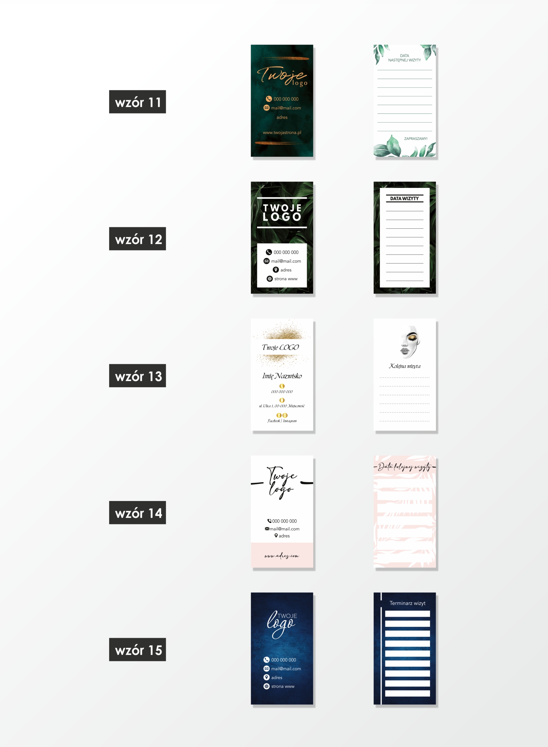 Wizytówki terminarze BEAUTY 1000 szt. folia - gotowe wzory SZABLONY