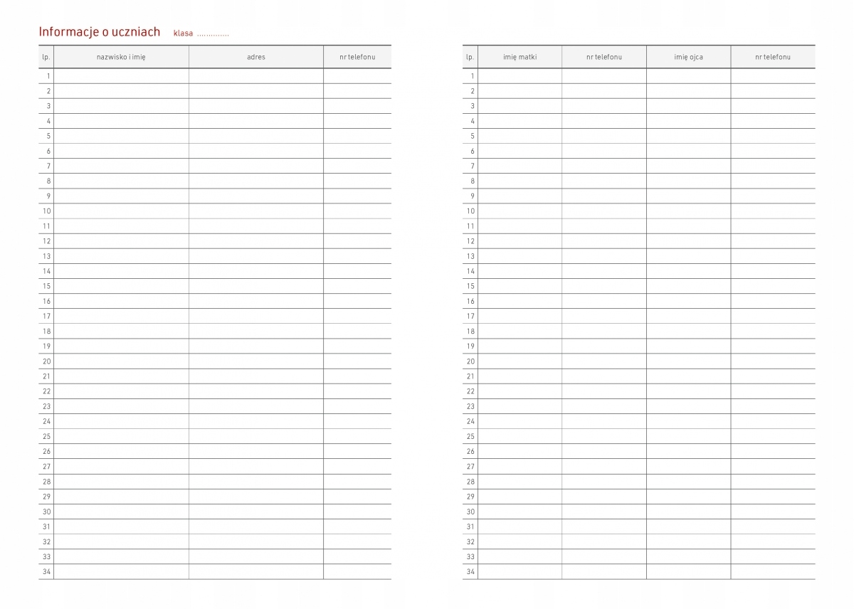 - планувальник на 2024/2025 навчальний рік (з липня 2024 року по жовтень 2025 року) - наступні місяці навчального року в колонках з місцем для поміток на кожен день