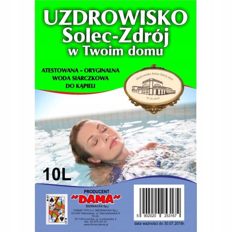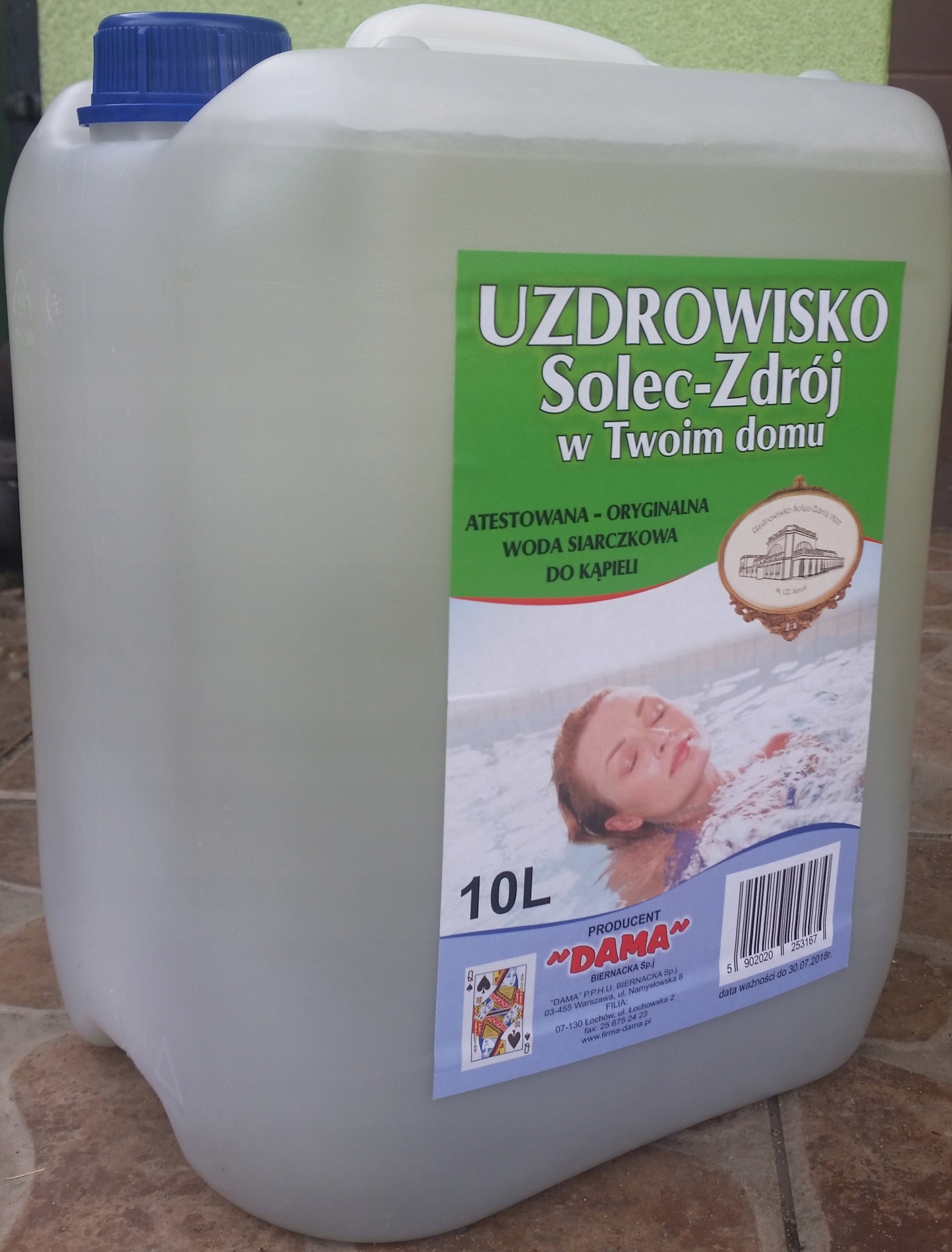 Ємність 10 л містить сульфідну воду, отриману безпосередньо з мінерального джерела Солець-Здруй , яка є найефективнішою в Польщі та однією з найкращих у Європі. Цією репутацією вона завдячує не лише концентрації сульфідної єни 135 мг/літр води, а й високій мінералізації.