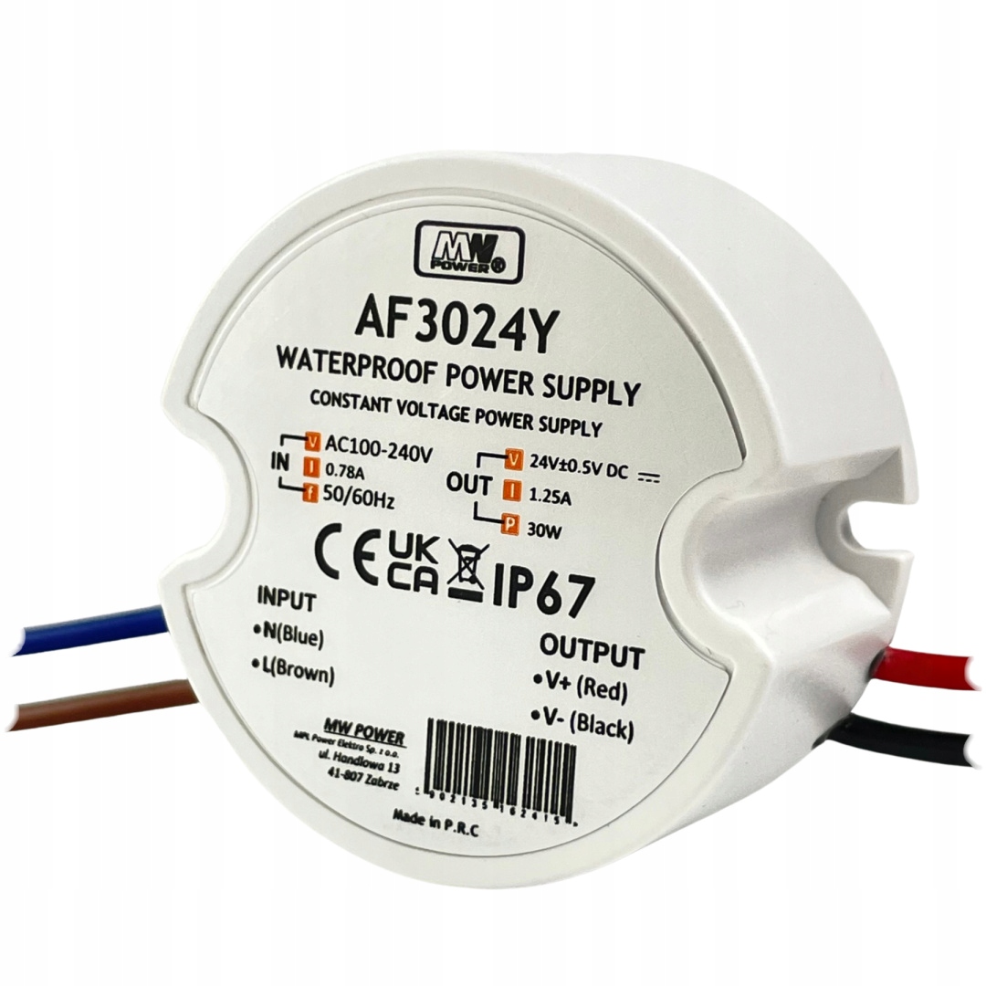 WODOODPORNY zasilacz 24V DC 30W 1.25A do puszki do TAŚM LED transformator