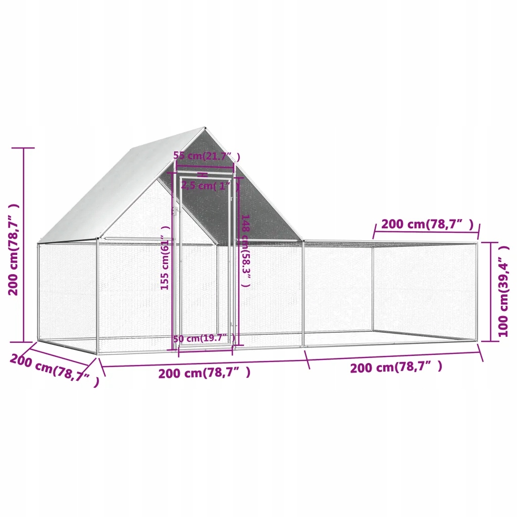 Woliery dla drobiu - 4x2x2m, srebrne