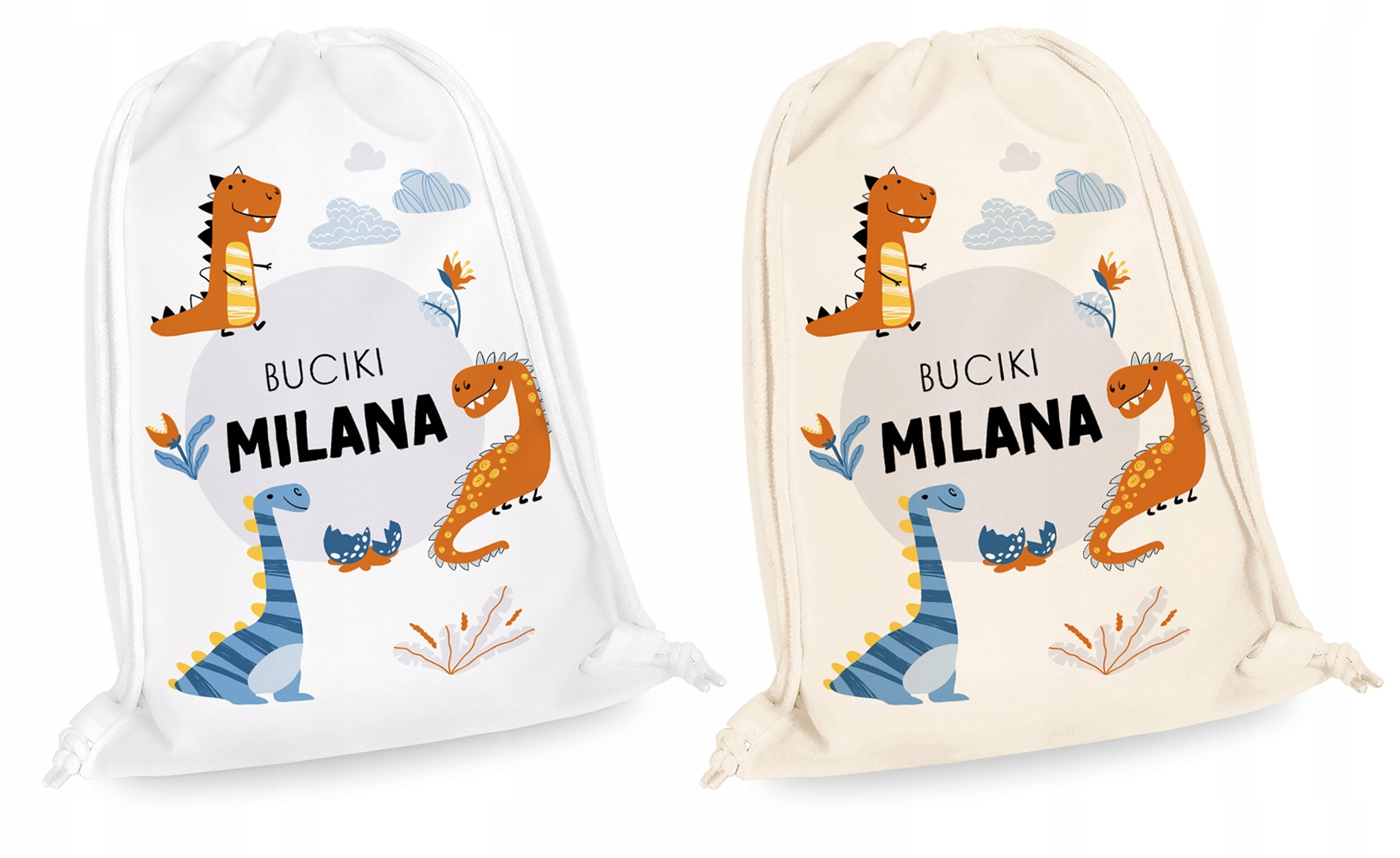 WOREK DINOZAURY DO PRZEDSZKOLA SZKOŁY ŻŁOBKA IMIĘ DZIECKA PODPIS WZORY