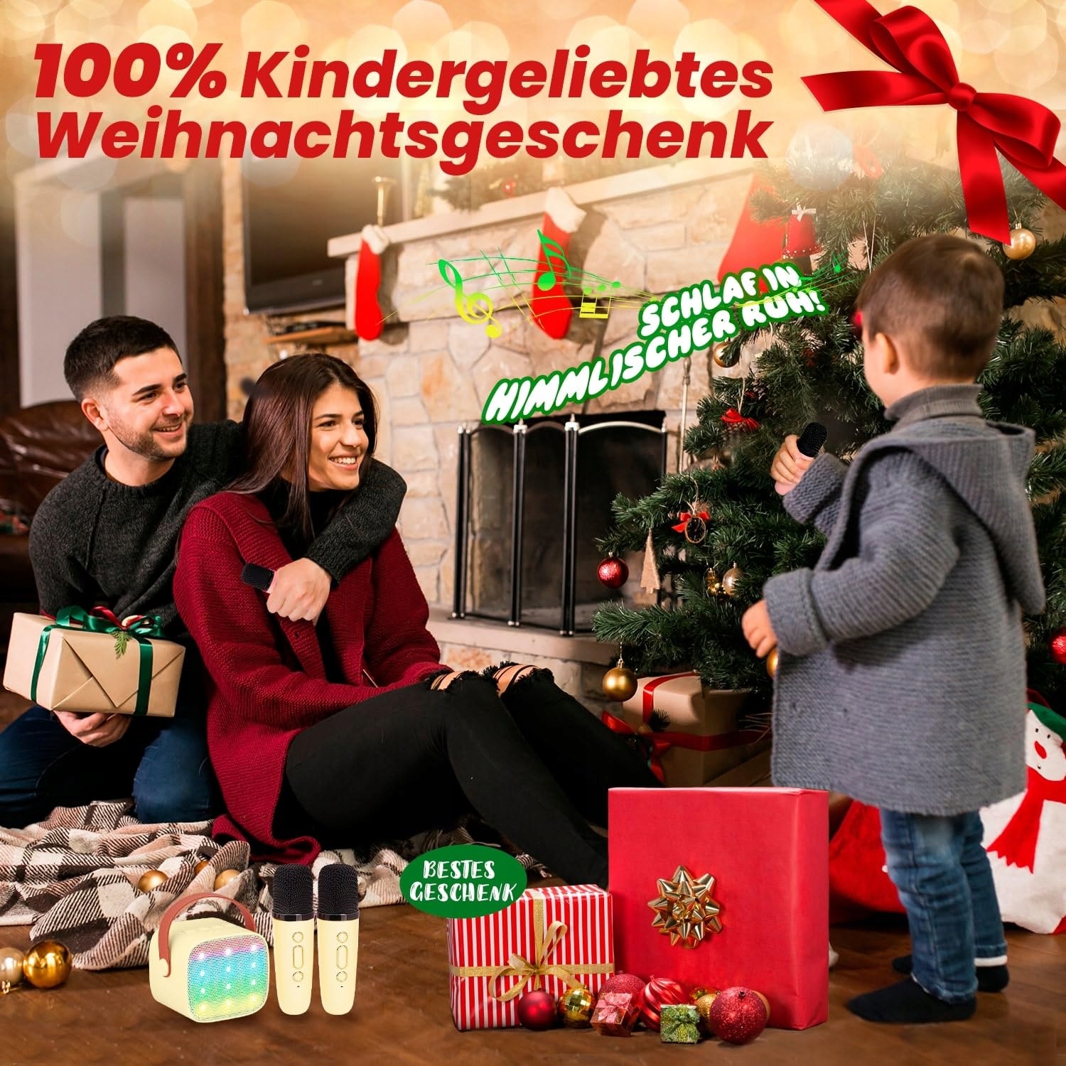 Караоке машина з 2 бездротовими мікрофонами, портативна машина Bluetooth караоке для дітей та дорослих з змінами голосу та світлодіодними вогнями, подарунками для хлопчиків та дівчат для домашніх подій (бежевих)