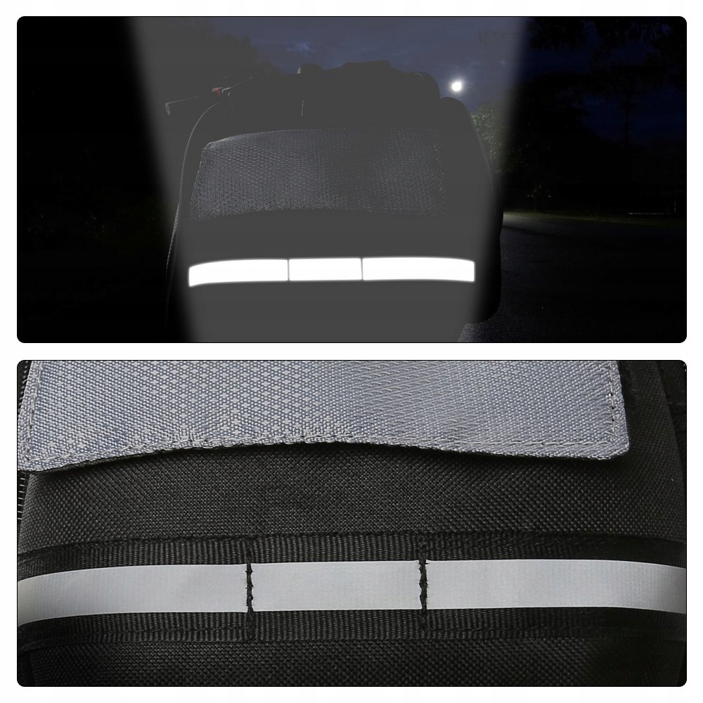 Сумка повністю виготовлена з високоякісних водонепроникних матеріалів, стійких до дощу. У свою чергу, завдяки великій відбиваючій накладці ви будете більш помітні на дорозі під час нічних поїздок. Простіше кажучи, сумка Wozinsky – ідеальний аксесуар незалежно від погоди чи часу доби.