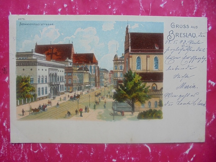 WROCŁAW BRESLAU UL.ŚWIDNICKA SCHWEIDNITZERSTRASSE ARTISTIC З ОБІГУ 25/05/1903 СТАН -Дуже хороший стан, ЧУДОВА ЛИСТІВКА ЕПОХИ МОЖЛИВІСТЬ ОПЛАТИ ТРАДИЦІЙНИМ ПЕРЕКАЗОМ ING BANK ŚLĄSKI