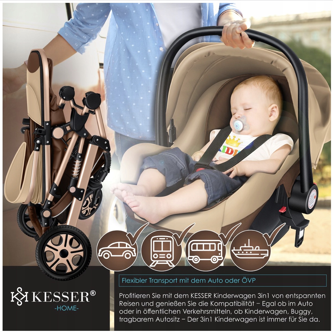 Wózek dziecięcy KESSER Loops 3w1 brązowo-beżowy