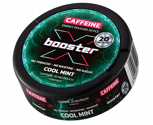 Енергетичні сумки X-Booster Cool Mint Special Edition 20 мг кофеїн створює абсолютно нову категорію продуктів, що дозволяє альтернативній формі постачання кофеїну. Це також продукт, який не містить тютюну чи нікотину!
