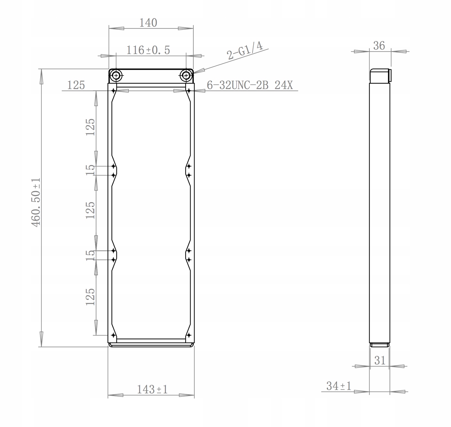 - Розміри: 143 x 36 x 460 мм (ШxГxВ)
