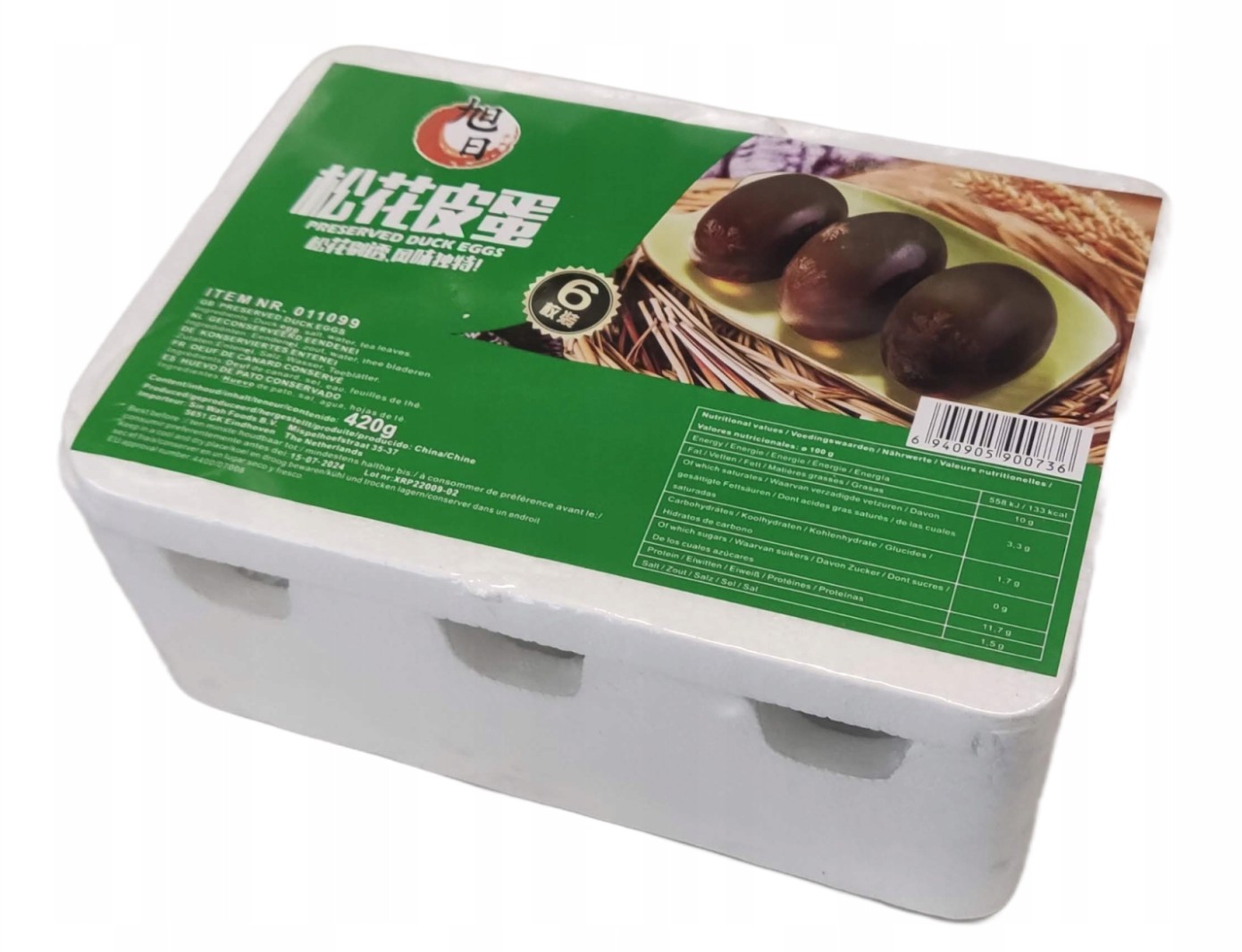 Консервовані качині яйця — традиційний азіатський делікатес, історія якого налічує сотні років. Качині яйця консервуються в спеціальному чайному розсолі, який надає їм характерного смаку і кольору. Це відмінний вибір для любителів екзотики, які хочуть відчути справжні смаки далекосхідної кухні. Ці яйця ідеально доповнюють салати, закуски або як самостійну страву. Їх унікальна текстура та смак — це кулінарна подорож для будь-якого смаку.