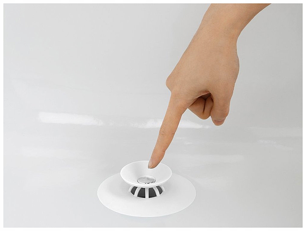 Пристосовується до більшості стандартних водостоків. Пробка не пропускає воду і запобігає потраплянню волосся в злив. Легко відкривається і закривається. Щоб відкрити кришку, натисніть срібну кнопку. Якщо ви хочете його закрити, просто опустіть виступаючу «ковпачок».