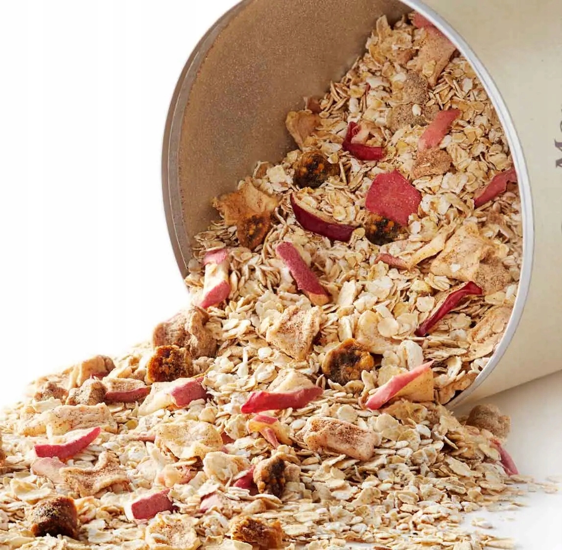 Ароматна композиція яблука та кориці в нашій вівсянці без додавання цукру є джерелом цінних інгредієнтів. Скуштуйте порцію природної солодкості сушеного інжиру та простих інгредієнтів і переконайтеся, як легко смачно зустрічати кожен день! Яблучна вівсянка з корицею містить тіамін, який сприяє правильній роботі серця. Інгредієнти: