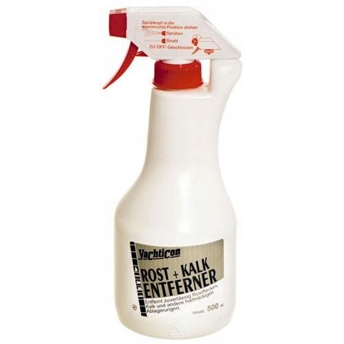 Yachticon Rost + Kalk Entferner - легко та швидко видаляє знебарвлення ламінату, гелькоуту та фарби, спричинене іржею, мінеральними відкладеннями та іншим сильним забрудненням. Дуже просте нанесення спреєм - розпиліть засіб на поверхню, яку потрібно очистити, дайте йому подіяти, а потім змийте. Концентрований продукт, дуже економічний і ефективний у використанні.