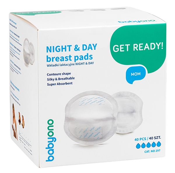 Прокладки для грудного вигодовування Night&Day - контурна форма забезпечує комфорт при носінні вдень і вночі, а дві самоклеючі смужки утримають прокладку в правильному положенні. Для підтримки належної гігієни кожен вкладиш упакований в окремий пакет.