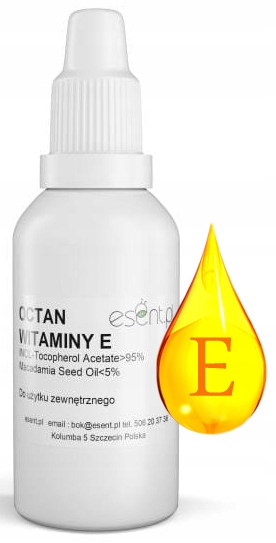 - Рекомендована концентрація в косметиці до 5%, ацетат вітаміну чудово розчиняється в жирах (олії, косметичні масла тощо), не розчиняється в вода.
