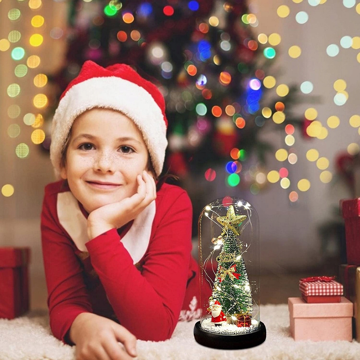 Ялинка у склі, світлодіодні вогники, новорічна прикраса