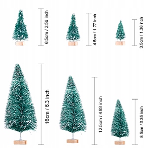 Набір містить 6 різних розмірів міні-ялинок, яких достатньо для прикраси на Різдво. Міні-сосна з ефектом снігу створить сніжну різдвяну атмосферу.