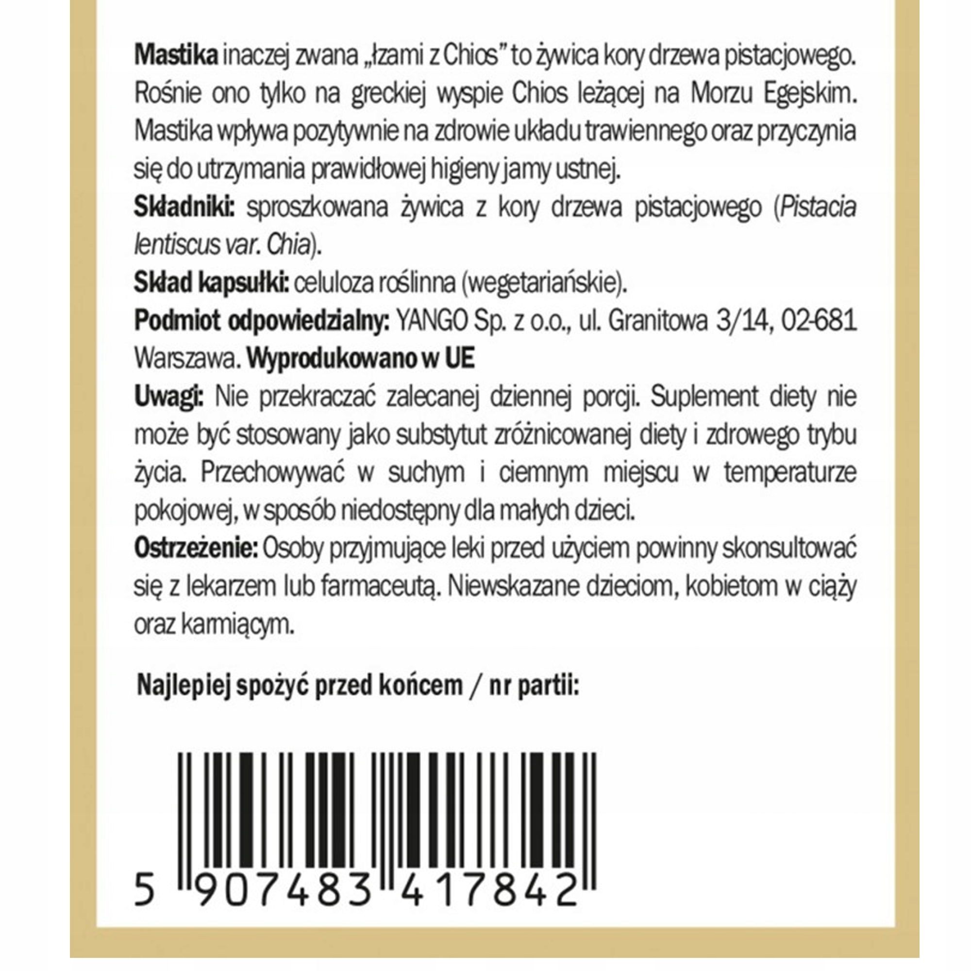 Просматривая «Янго МАСТИКА 480мг 60 капсул», вы можете быть уверены, что данный товар из каталога «Пищеварительная система» будет доставлен из Польши и проверен на целостность. В цене товара, указанной на сайте, учтена доставка из Польши. Внимание!!! Товары для Евросоюза, согласно законодательству стран Евросоюза, могут отличаться упаковкой или наполнением.