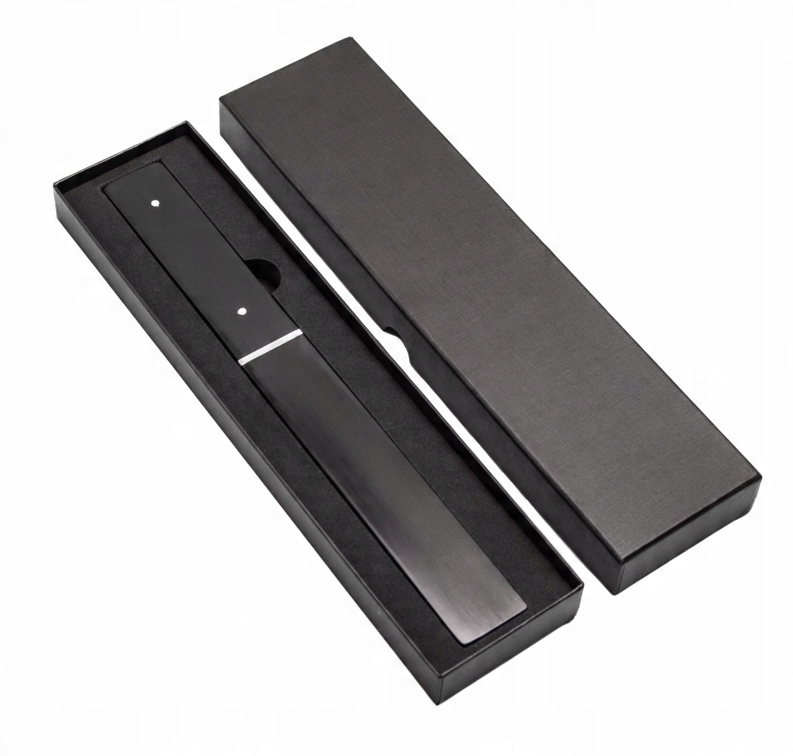 - Естетична чорна картонна упаковка для ножа - це не тільки зручне рішення, але й гарантія безпеки під час транспортування та зберігання. Завдяки такій упаковці ніж буде надійно захищений від пошкоджень, подряпин або втрати гостроти.